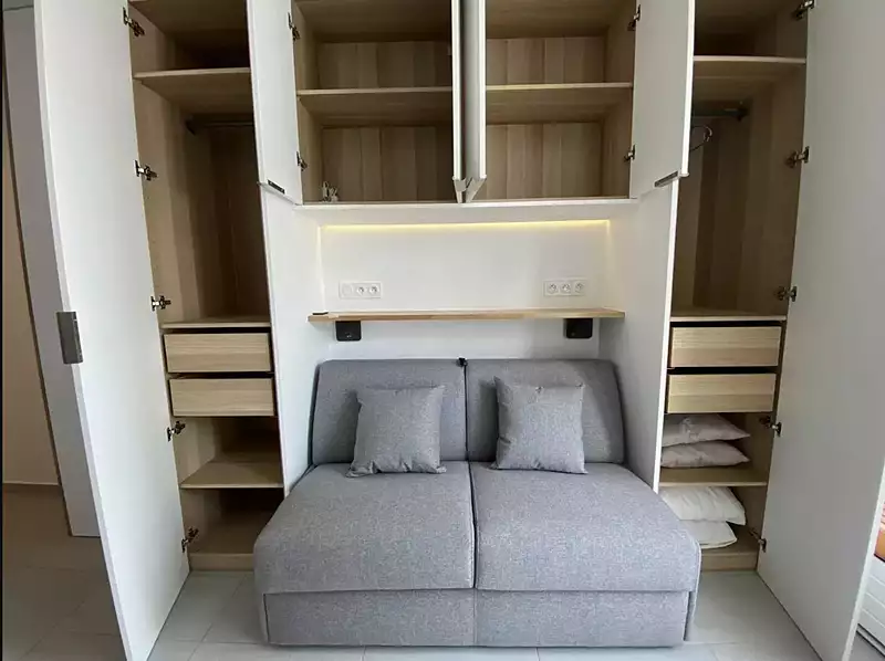 Ce studio d'exception, entièrement rénové et baigné de lumière, offre une vue remarquablement dégagée. Meublé avec soin, il propose une élégante cuisine américaine aménagée et équipée, un canapé-lit haut de gamme ainsi qu'une salle de bains contemporaine avec WC.