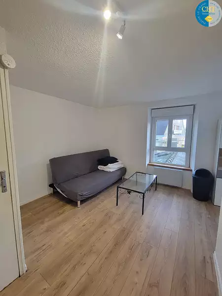 A LOUER A PLELAN LE GRAND un studio meublé rénové situé au premier étage d'un immeuble à usage mixte en centre ville, à proximité immédiate de la quatre voie, composé d'une pièce de vie avec coin cuisine équipée, coin couchage et salle d'eau avec WC.