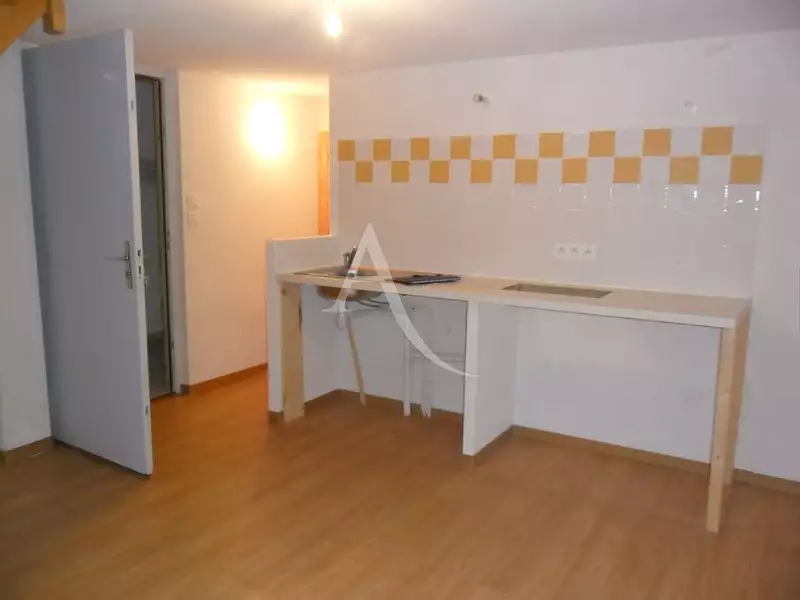 Studio en duplex, comprenant une pièce principale avec un coin cuisine/séjour, une salle d'eau avec WC et un escalier menant à la mezzanine. Chauffage électrique. Classe énergie C. Loyer charges comprises : 297 euros (la provision pour charges s'élève à 7 euros et comprend les ordures ménagères et l'électricité des communs). Libre de suite