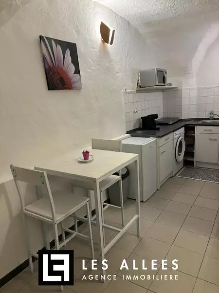 Dans le centre ville de Montélimar, appartement T1 meublé au rdc comprenant une pièce de vie avec un coin cuisine et une salle d'eau avec wc.