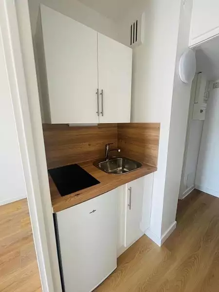 Au 8ème étage d'une résidence avec ascenseur, beau studio de 19,7m², spacieux et lumineux, comprenant une entrée, une kitchenette équipée, une pièce de vie avec balcon et une salle d'eau.