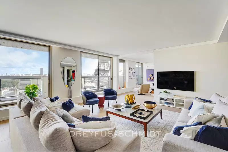 Avec une vue imprenable sur la Tour Eiffel et le Trocadéro, DREYFUS SCHMIDT vous propose un appartement de standing dans une résidence sécurisée, au 6e étage par ascenseur PMR.