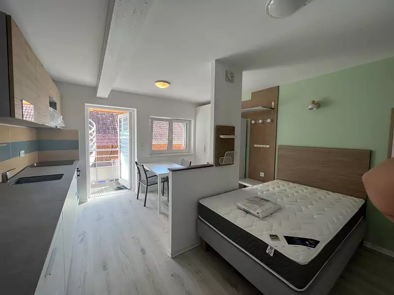 Andolsheim, A LOUER Studio Meublé de 20 m2. Idéalement situé avec un accès facile à Colmar et Horbourg-wihr. Situé au 1er étage d'une petite copropriété composé de 3 appartements. Le studio est neuf et entièrement aménagé et équipé. Le prix comprend la consommation d'électricité, d'eau et de chauffage. Disponible à partir du 13/11/2025! Contactez-nous au tps://