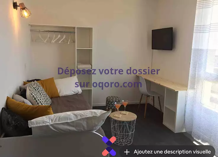 Studio meublé dans une résidence étudiante avec local à vélo, laverie, gardien, vidéosurveillance