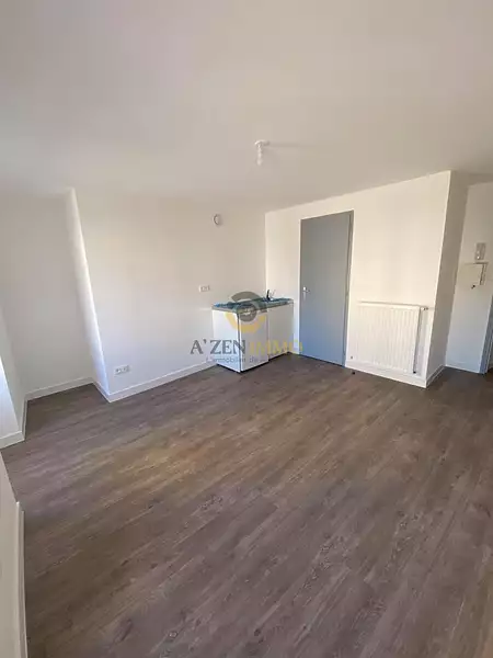 Studio de 27m² au 2ème étage d'un immeuble en plein coeur de ville, Kitchinette avec plaques et frigo, salle d'eau avec douche et WC.