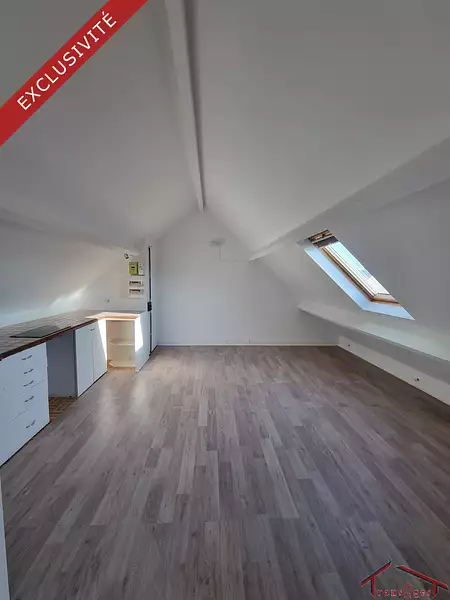 Nous vous prions proposons à la location en bail de logement non meublé, ce bel appartement deux pièces en sous pente au 2ième et dernier étage d'une maison . D'une surface au sol de 60.14 m2 pour une carrez de 20.92 m2. Ce logement vous offrira une grand séjour cuisine, une pièce de 8.45m2 pouvant servir de chambre et une salle d'eau avec douche, lavabo et WC.