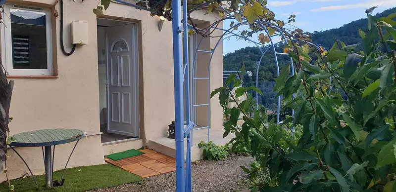LES MAYONS, situé au rez de chaissée d'une maison de village, STUDIO entièrement rénové et meublé avec goût, disposant d'une climatisation réversible et petit jardinet privatif.