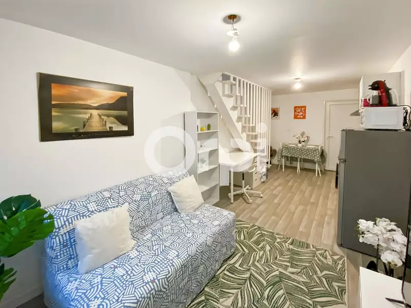 En duplex, appartement 2 pièces LOCATION MEUBLÉE avec jardinet, terrasse et stationnement.