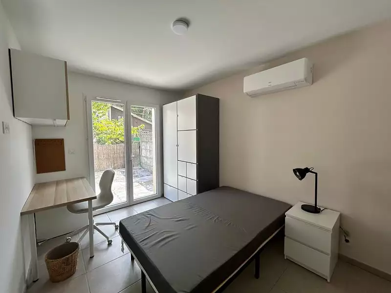 Chaque chambre d'environ 12 m² dispose d'un lit, une armoire, un bureau, un coin d'eau avec douche, lavabo et WC. Les parties communes regroupent un salon, salle à manger, une cuisine ouverte aménagée et équipée, 3 WC et une buanderie avec une machine à laver et un sèche linge.