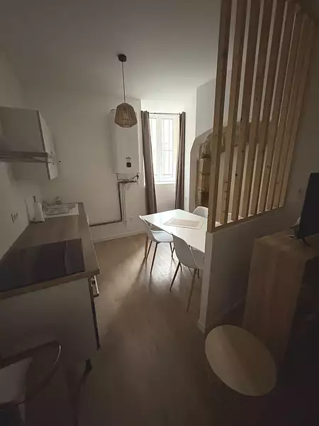 ROMANS SUR ISERE, vieux Romans, appartement entièrement meublé au 1er étage. Il comprend un espace salon/Chambre, un coin cuisine, une salle d'eau avec wc. Chauffage individuel électrique. Libre.