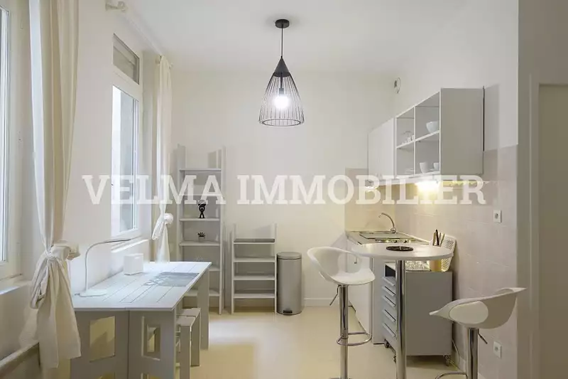 VALENCE (26000) - Hyper Centre Piéton - Appartement type studio meublé de 20,54 m². Composé d'un séjour avec une cuisine US équipée, une salle d'eau avec wc. En très bon état en général. Très calme. Proche des commodités. Chauffage individuel. Double vitrage PVC - Loyer : 400,00 € + 50,00 € pour les charges (Eau froide, taxe d'enlèvement des ordures ménagères, entretien des communs, minuterie) - Dépôt de garantie 400.00 € - Honoraires d'agence dues seulement à la signature du bail : 400,00 € - Classe énergie D - Classe climat A. Les informations sur les risques auxquels ce bien est exposé sont disponibles sur le site Géorisques : georisques.gouv.fr - VELMA IMMOBILIER - 6, rue Brunet - 'Le Connétable' - 26000 Valence - 04 75 56 35 09 - - Contact : Mr SERVEL - Référence annonce : MS438