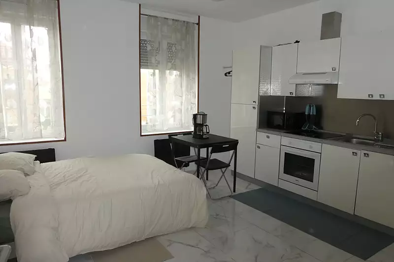 A proximité immédiate de la gare, studio de 21 m² meublé comprenant une pièce de vie avec cuisine meublée et équipée, une salle de bain avec douche, lavabo et WC. Libre le 14.12.2025 Chauffage électrique. Loyer : 500 euros