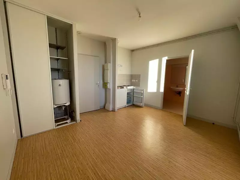 Idéalement situé au cœur de La Souterraine, ce studio accessible aux personnes à mobilité réduite et situé dans un immeuble avec ascenseur, il comprend une pièce de vie avec kitchenette équipée d'une plaque électrique et d'un réfrigérateur.