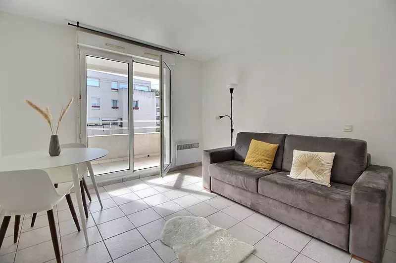 Dans une résidence sécurisée avec ascenseur, un appartement de type Studio meublé de 21.26 m² avec une loggia d'environ 5 m² exposée ouest se composant d'une entrée avec placard, d'une pièce de vie avec coin cuisine équipée, d'une salle d'eau avec W.C.