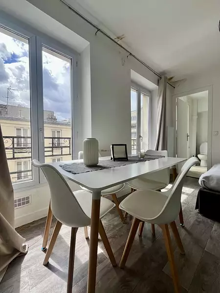 A deux pas de Parmentier, charmant studio refait à neufau 3ème étage d'un immeuble ancien. Pièce de vie baigné de lumière avec vue dégagée sur Paris et ses monuments. Cuisine séparée aménagée et équipée. Salle d'eau avec douche et coin buanderie.