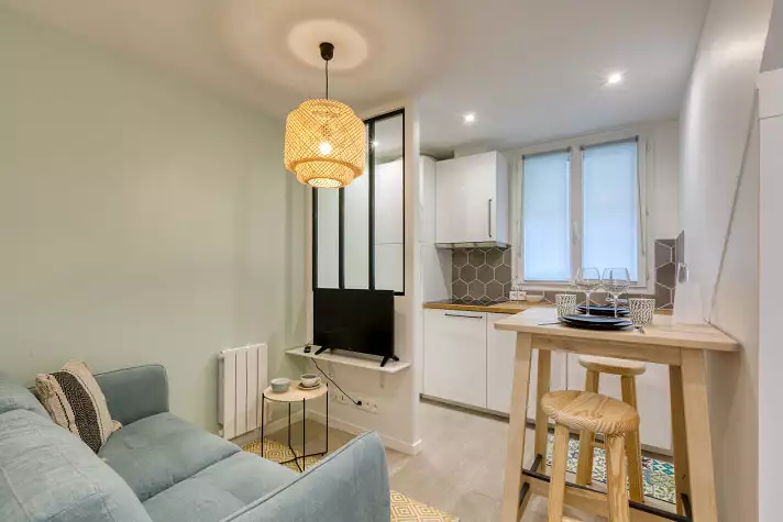 Vous serez charmé par ce bel appartement qui se compose astucieusement d'un séjour lumineux ,d'une chambre agréable disposant d'un coin rangement , un coin cuisine, d'une salle de bain et de WC indépendants. Un agencement pensé pour l'essentiel, sans le superflu.