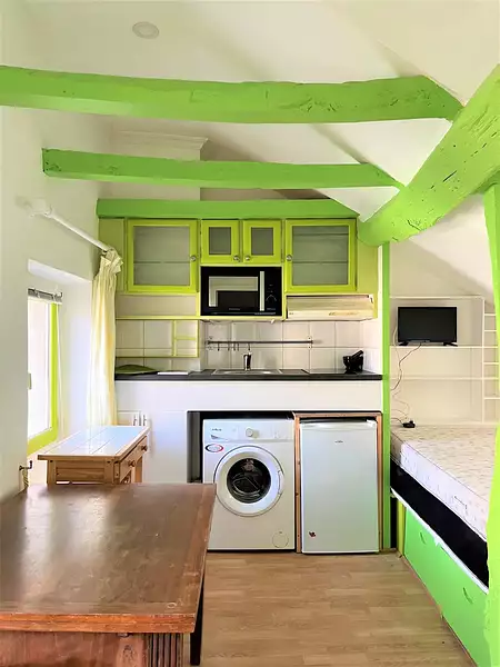 Idéalement situé dans une rue prestigieuses de l'île Saint Louis, charmant studio de 21 m2 récemment rénovée au 4ème étage d'un immeuble ancien. Entrée, pièce de vie avec coin couchage, cuisine américaine, salle d'eau avec WC privatif.