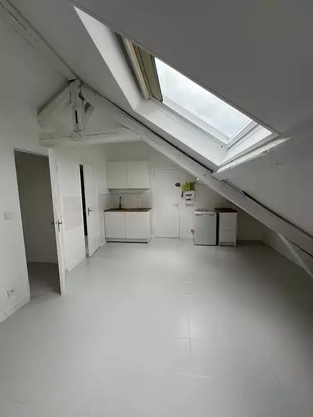 REFERENCE AGENCE : 12992 - LE HAVRE, PROXIMITE ROND POINT/UNIVERSITE - Appartement de type F1 refait au 4ème étage comprenant une pièce de séjour avec un coin cuisine aménagée et équipée (plaques, frigo, machine à laver), une petite pièce pouvant servir de chambre ou de bureau, une salle de douches avec un WC.