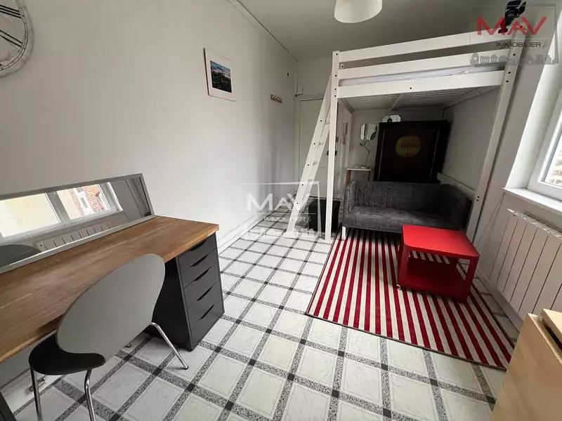A LOUER - MARCQ-EN-BAROEUL, rue de L'Abbé Bonpain - Au 1er étage d'un petit immeuble sans ascenseur, charmant studio meublé de 21.48 m² offrant une pièce de vie, une cuisine séparée et équipée (plaque de cuisson, réfrigérateur, micro ondes), une salle d'eau avec WC. Menuiserie double vitrage et persiennes - chauffage individuel électrique. Environnement agréable, à proximité immédiate de toutes commodités (fleuriste, boulangerie, épicerie alimentaire), à deux pas du Tramway Buisson et arrêt de bus ! Loyer 580 euros cc dont 30 euros/mois de prov. charges ( régularisation annuelle - eau froide, communs) - Dépôt de garantie : 1100 euros - Honoraires charge locataire : 279,24€ comprenant 64,44€ pour l'état des lieux d'entrée. Dossier soumis aux conditions de la garantie des loyers impayés.