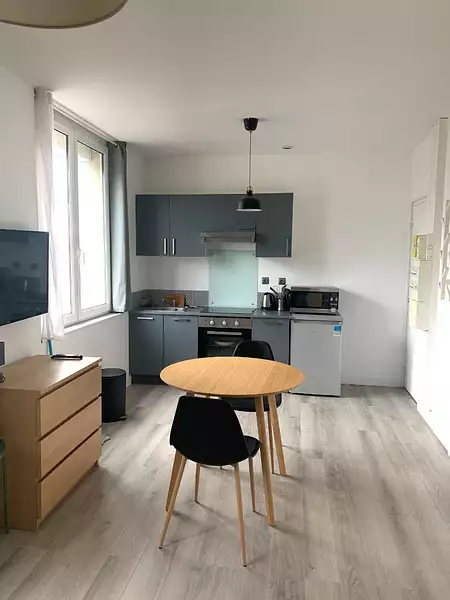Beau studio entièrement meublé et équipé avec goût d'une surface d'environ 23 m2 au deuxième et dernier étage à proximité immédiate de la gare de Rambouillet Le studio est composé d'une pièce principale avec 2 fenêtres le rendant lumineux et d'une salle d'eau avec WC et sèche serviettes. Situé en plein coeur de Rambouillet avec accès à toutes les commodités.