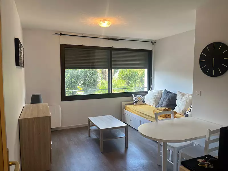 Disponible au 1er novembre Au sein d'une résidence sécurisée, avec ascenseur, joli Studio meublé comprenant une pièce de vie avec cuisine ouverte et salle de bain avec WC . Les charges comprennent l'entretien des parties communes, ainsi que la taxe d'ordures ménagères (avec régularisation annuelle)