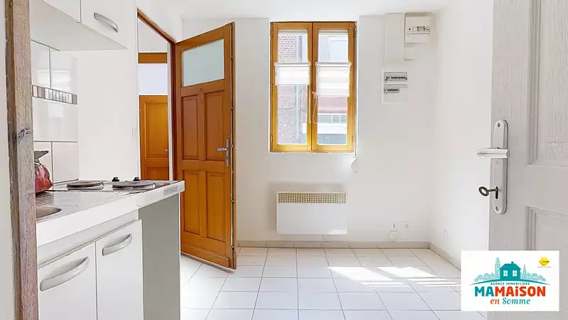Appt de 23 m2 comprenant entrée, sejour avec coin cuisine, salle de douche et wc, au premier une chambre