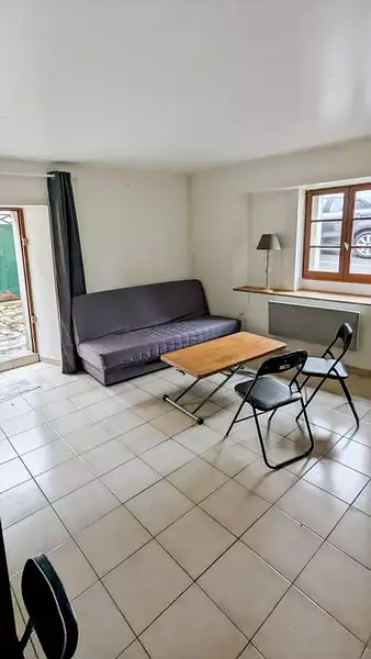 Niché au calme, en rez-de-chaussée au fond d'une impasse privée, il offre un cadre de vie paisible. La pièce principale est parfaitement optimisée avec un coin repas (table), un espace travail (bureau) et des rangements astucieux.