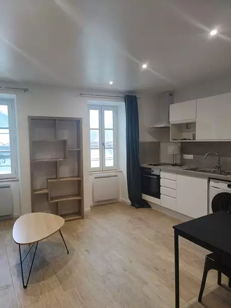 Charmant studio entièrement meublé et récemment rénové situé en plein cœur de ST JEAN D'ANGELY, au 1er étage sans ascenseur d'un petit immeuble.