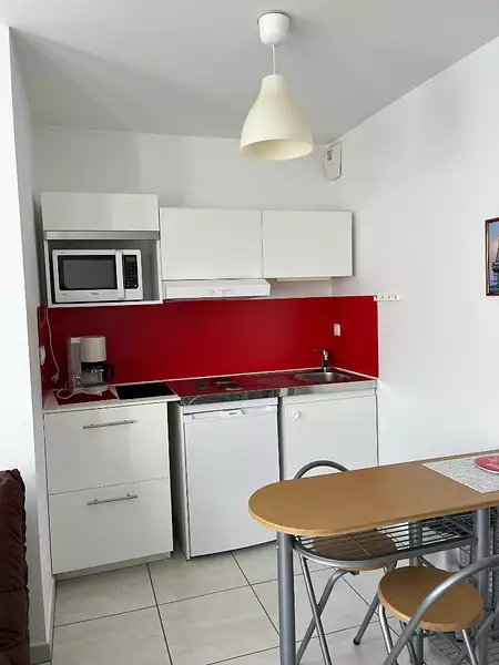 Studio meublé de 24.45m² au rez-de-chaussée, comprenant : entrée, séjour avec coin kitchenette, salle d'eau avec wc. Libre de suite.