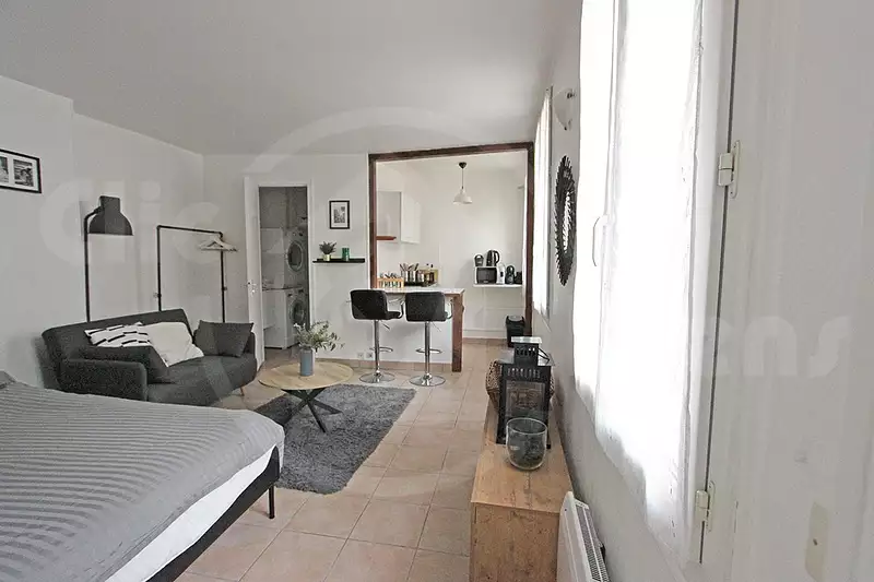 NOTRE DAME : Joli studio meublé et équipé avec goût, en premier et dernier étage. Ce bien en très bon état général est d'une superficie de 24,31m2 au sol. Il se compose d'un séjour/chambre avec cuisine américaine de 19,67m2. Ce studio est sans vis-à-vis. La cuisine est équipée : plan de travail, placards, four, plaques, frigidaire et lave-linge. Salle d'eau avec WC. Ce studio en parfait état, calme et lumineux de 24,31 m2 (loi Boutin) est proche des transports (gare de Versailles Rive droite et Rive Gauche à 8' à pied, Chantiers à 15') proche des commerces, des écoles et toutes les commodités. Loyer mensuel : 950 € et 30 € de provisions de charges (Prévisionnelles mensuelles avec régularisation annuelle). Dépôt de garantie : 1 900 €. Les honoraires sont de 291,72 € TTC d'honoraires à la charge du locataire au titre des honoraires de visite, de constitution de dossier, de rédaction du bail et de 72,93 € pour l'état d'entrée des lieux / Bail code civil : 10 % du loyer annuel HC + TVA (20%). Ce bien est proposé par un agent commercial 510392327 R.S.A.C.Estimation des coûts annuels d'énergie du logement entre 660 € et 930 € (consommation énergie primaire 419 kWh/m2/an et émission de gaz à effet de serre 13 kg.CO2/m2/an).