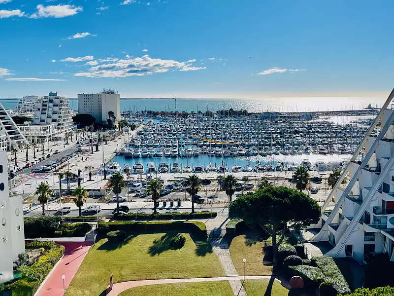 Vue port à La Grande Motte pour ce studio en location annuelle meublée. Situé au 8ème et dernier étage d'une résidence de standing, cet appartement propose une vue magnifique sur le port. Superficie totale avec loggia intégrée de 31,39 m2 (25,91 m2 Loi Boutin). Climatisation réversible. Loué avec un parking privé. Equipé d'un lit escamotable + canapé BZ.
