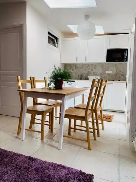 Studio neuf meublé indépendant au sein du jardin des propriétaires à proximité des commerces et centre ville composé d'une pièce principale avec un coin cuisine, salle d'eau + wc et terrasse.