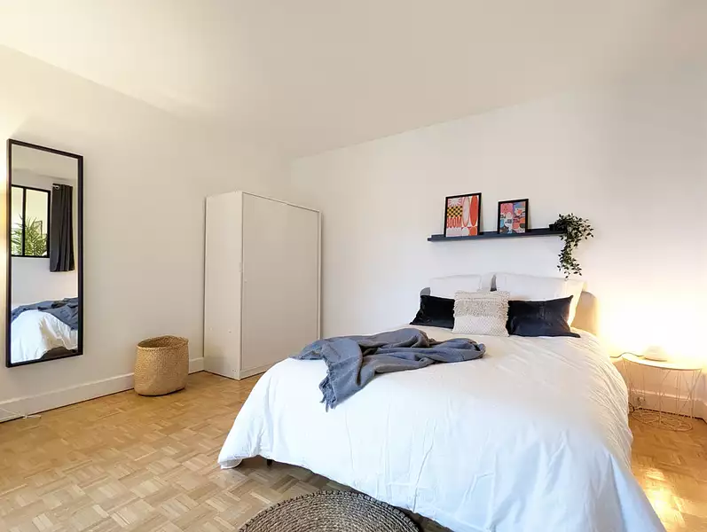 Chambre en colocation disponible à la location au sein d'un appartement meublé et équipé situé à Paris, dans un quartier animé et à proximité des transports en commun.