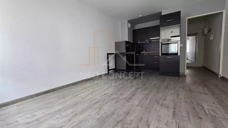L'agencement intérieur propose une entrée avec placards intégrés, une lumineuse pièce à vivre comprenant une cuisine partiellement équipée ouverte sur la pièce principale, et une salle d'eau avec wc (douche, emplacement pour lave-linge, meubles de rangements et miroir). Les autres meubles seront mis à disposition avant la location.
