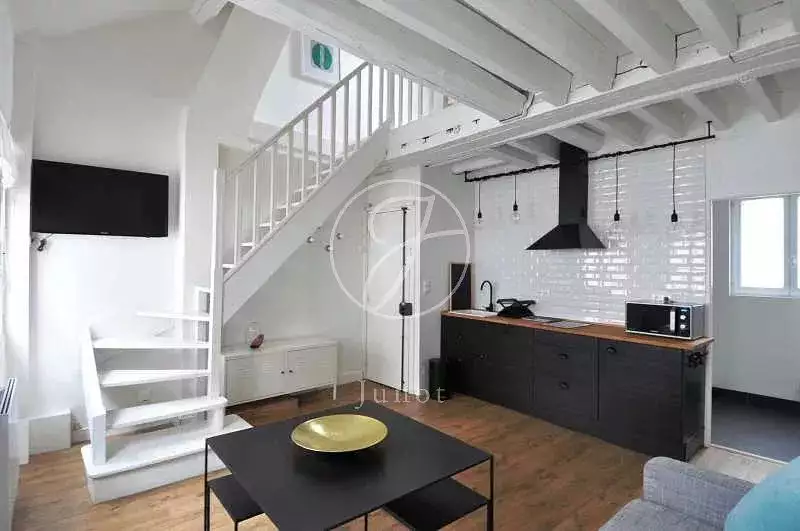 Paris 18e - RUE DURANTIN / ABBESSES - Duplex à louer - 2 pièces meublé - 26,57m² Carrez - 40,26m² au sol - 1 chambre.