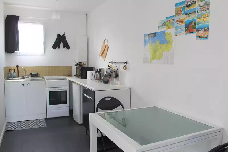 Situé à Saint Cast, studio meublé d'une surface habitable de 26 m² env. comprenant: entrée par séjour, coin cuisine équipé, salle d'eau avec douche et wc. Chauffage électrique. Terrasse privative - (Prévoir en + forfait de 90 euros/mois de charges incluant électricité, eau, connexion internet, taxe ordures ménagères et espaces verts).