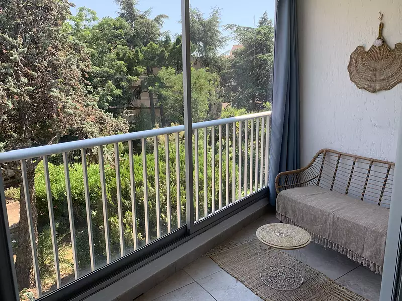 À Saint-Raphaël centre-ville dans une résidence arborée et fermée, un studio meublé de 26 m2 plus loggia fermée de 5.5 m2, proche toutes commodités à pied (commerces-gare-plages).