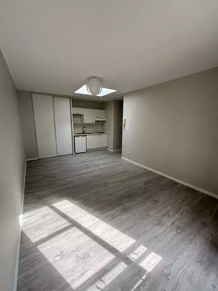 Réf 2653 Studio de 28.98m² comprenant entrée avec placard, penderie, salle d'eau avec WC, pièce à vivre avec cuisine ouverte aménagée, meubles hauts et bas ( plaques électrique, hotte, réfrigérateur) . 1 Place de PARKING (50€ en plus) H.C.L : 376.74€ TTC dont 86.94 € de frais d'état des lieux d'entée.