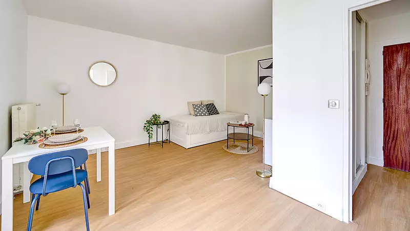 Métro Sèvres-Lecourbe. Un beau studio lumineux meublé en étage élevé exposé Sud-Est, dans une résidence à proximité de toutes commodités.