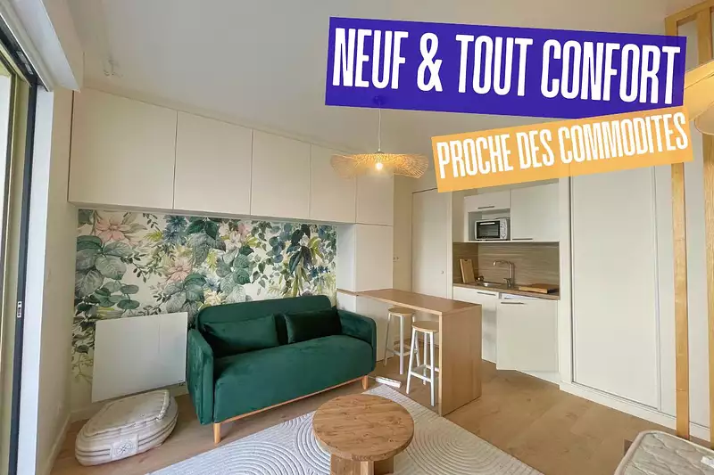 Ce T1 bis meublé de 29 m², neuf et tout confort, offre un espace parfaitement optimisé grâce à de nombreux rangements.