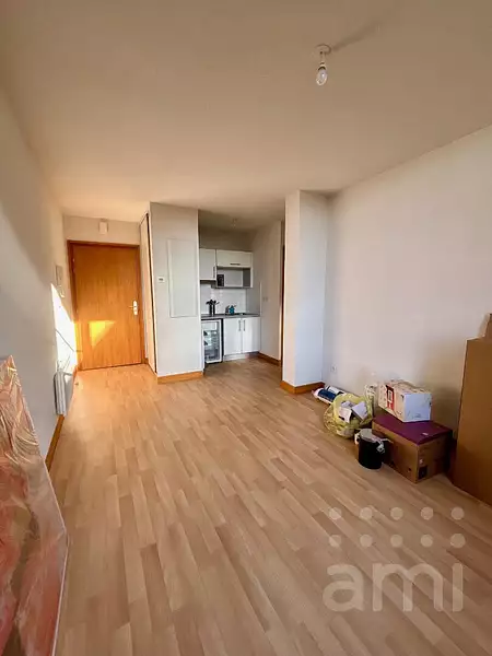 Appartement T2 entièrement meublé comprenant : entrée avec placard, séjour avec cuisine ouverte aménagée et équipée (frigo, four/micro-ondes, plaque, hotte) une chambre (placard), salle de bains et WC. PLACE DE PARKING EXTERIEUR N°8 Provisions sur charges : Ordures ménagères et entretien des parties communes. APPARTEMENT EN COURS D'AMEUBLEMENT LIBRE LE 15 DECEMBRE