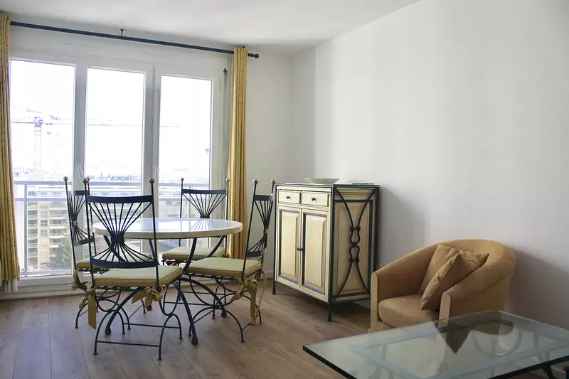 PARIS 15e LOURMEL : Au 12e étage avec ascenseur d'un immeuble récent de bon standing. Studio meublé de 30m2, calme et clair, bénéficiant d'une vue dégagée. Il comprend: une pièce de vie avec baie vitrée, canapé-lit, une cuisine séparée équipée (réfrigérateur, plaques, four, hotte), une entrée avec lit-clos, une salle d'eau avec wc, une cave. Double vitrage, chauffage et eau chaude collectifs. Situé À 350m du Métro Lourmel (L8) et 750m de la Porte de Versailles (L12), à proximité immédiate du tramway T2 et T3. LOUÉ MEUBLÉ, DISPONIBLE LE 1ER JUILLET