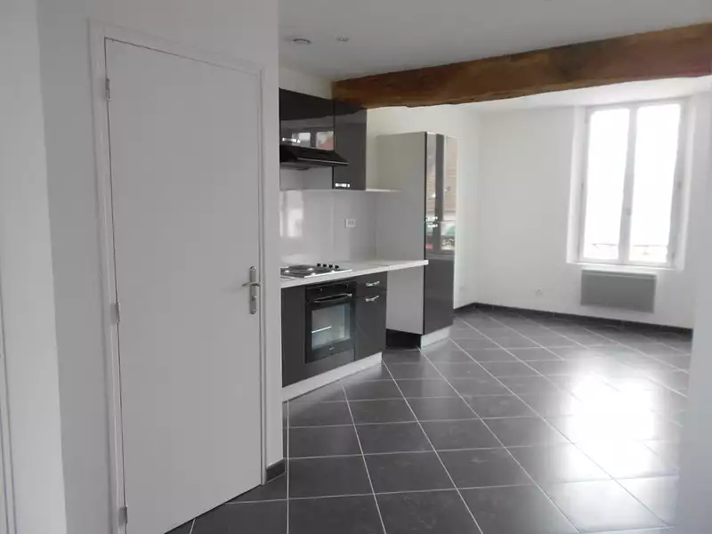 PONT STE MAXENCE, CENTRE VILLE, APPARTEMENT T1, offrant : séjour / cuisine ouverte aménagée et équipée (four, plaques de cuisson, hotte, réfrigérateur/congélateur), salle d'eau / wc. A saisir.LIBRE DE SUITE