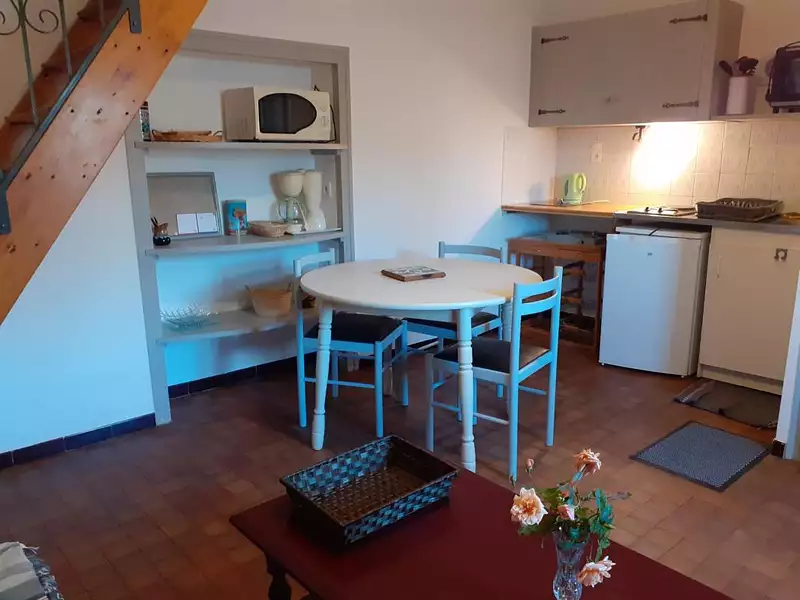 Situé au premier étage, il se compose d'une cuisine aménagée et équipée ouverte sur le séjour.