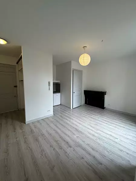 Appartement de type 2 de 31.61 m2 comprenant : une pièce de vie avec coin kitchenette aménagée et équipée (plaque électrique et frigo), une chambre, une salle d'eau avec wc. Un jardin. Libre de suite