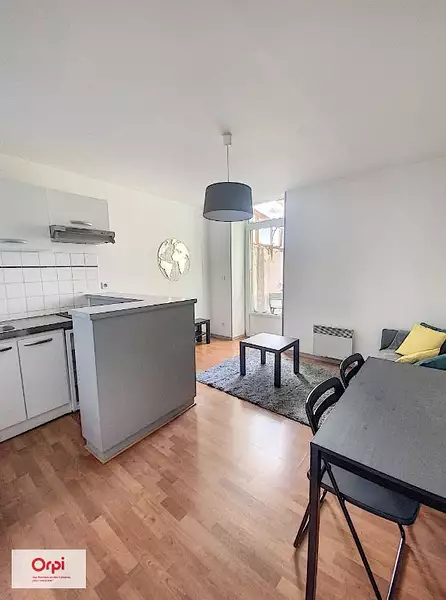 MONTLUCON - CENTRE VILLE A deux pas du Lycée Madame de Staël. Appartement de type T2 composé d'un séjour ouvert sur un coin cuisine aménagée et équipée, une chambre avec placards, une salle de bains et un WC indépendant. Un balcon. Un emplacement de parking. Double vitrage PVC. Chauffage individuel électrique Disponible de suite ORPI LOCATION 04 70 02 33 78