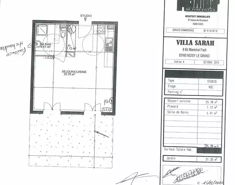 L'appartement se compose d'un séjour avec cuisine ouverte, une salle d'eau et un jardin privatif de 21m2 !