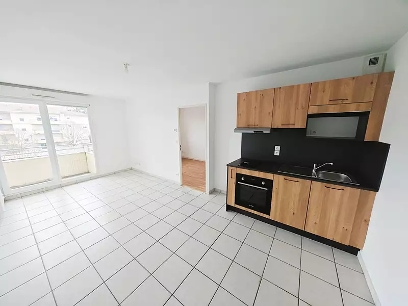Résidence LE CLOS DES VIGNES, 150 rue Berthelot 01500 Ambérieu En Bugey. Appartement récent avec belles prestations. T2 de 32.12 m² avec balcon de 5.79 m² au 2ème étage. Très clair, exposition Sus-Est. Séjour en carrelage avec cuisine ouverte équipée des meubles hauts et bas + 1 plaque électrique + 1 hotte. Une chambre indépendante en parquet flottant avec sa salle de bain privative équipée d'une baignoire, une vasque encastrée, un grand miroir avec bandeau lumineux et radiateur sèche serviettes. Appartement très lumineux, très bien conçu sans perte de place. A visiter sans attendre ! Coup de coeur assuré. Résidence sécurisée par portail électrique 1 place de parking privative. Résidence avec piscine privative réservée aux locataires. Local à vélos. Les atouts de cette résidence: piscine privative, interphone, digicode, ascenseur, cuisine équipée, doubles vitrages, volets roulants doubles parois sur toutes les fenêtres, porte palière 3 points sécurisée, chauffage, eau, électricité individuel. Au centre des commerces. Gare SNCF à proximité immédiate. A voir absolument ! LOYER 625 euros + CHARGES 40 euros / Mois. Honoraires TTC en sus : 389.52 euros Dépôt de garantie : 625 euros Visite sur rendez-vous auprès de l'agence GEDIRA au 04 37 23 11 61 ou au 06 85 43 59 27 avec la référence VIGNES 201 B.