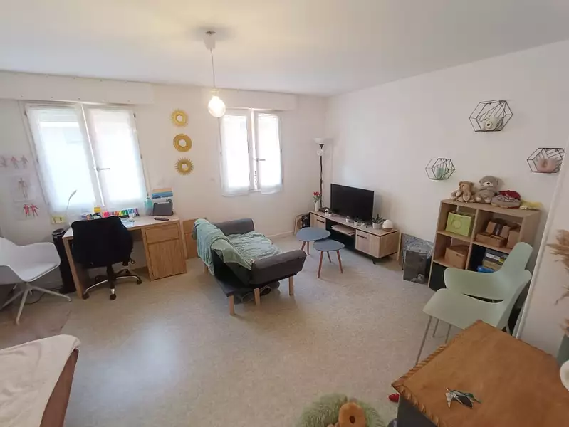 Pièce de vie : lumineuse, comprenant un coin salon, un espace nuit et un coin bureau fonctionnel