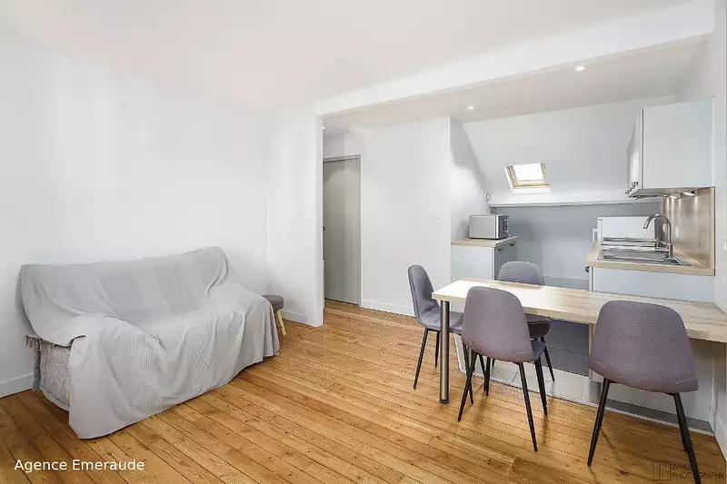 Situation idéale pour cet appartement à louer à l'année en meublé. Situé en plein coeur de la vie Dinardaise, cet appartement de type 2 refait à neuf est situé au 3ème et dernier étage d'une petite copropriété. Il offre une entrée, une pièce de vie baignée de lumière, une cuisine aménagée et équipée, une chambre avec dressing, une salle d'eau avec douche et WC. Loyer 578 euros + Charges 150 euros (copropriété ,TEOM, électricité, eau). Libre à partir du 25 novembre 2025. Pour tous renseignements, contactez l'Agence Emeraude 0299461101. Réf.4138 Copropriété de 3 lots - dont 3 lots habitation.().